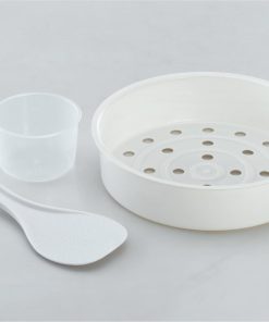 Phụ kiện kèm nồi là dây nguồn 1.0 m, cốc đong, muỗng cơm, và xửng hấp dùng để chế biến các món hấp đơn giản, góp phần làm đa dạng bữa ăn của gia đình