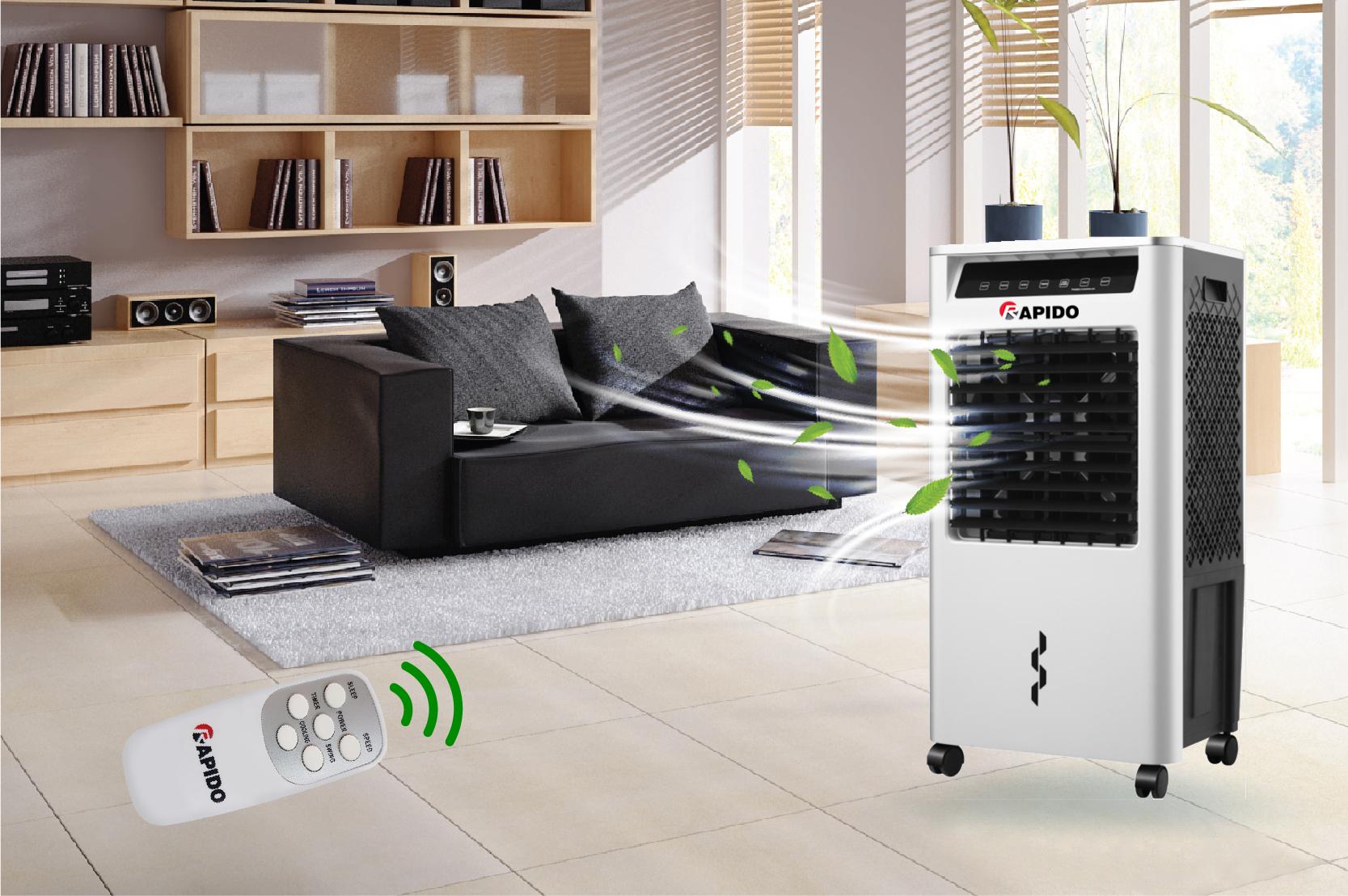 Ngày nay vấn đề ôi nhiễm môi trường luôn được các cơ quan chức năng đưa lên các bản tin thời sự để cảnh báo cho người dân. Bắt kịp nhu cầu của thị trường tiêu dùng Quạt điều hoà Rapido đã trang bị thêm tính năng lọc không khí. Công nghệ ionizer Hàn Quốc tích hợp trong quạt điều hoà Rapido đã lọc sạch được 99,98% bụi mịn, vi khuẩn, …..đem lại bầu không khí trong lành