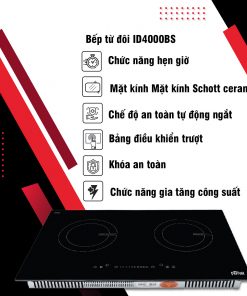 2 vùng bếp nấu có thể hoạt động song song với bảng điều khiển độc lập giúp điều chỉnh dễ dàng