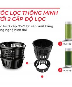 • Bộ đôi cốc lọc thông minh với 2 cấp độ lọc nước ép tinh và nước ép thô hơn