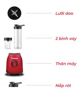 Máy xay sinh tố Rapido RB-300M là sản phẩm thiết kế 2 trong 1 với công năng đặc biệt khi bình xay khoong chỉ có công dụng chứa thực phẩm, hoa quả để để lưỡi dao sắc bén làm nhuyễn mà sau khi xay xong người dùng có thể tháo ra, dùng nắp rót đậy lại và mang theo đi để uống. Như vậy bình xay còn có thêm công dụng khác đó chính là làm bình đựng nước.