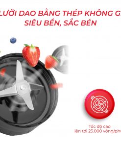 Máy xay sinh tố được trang bị lưỡi dao chắc chắn, sắc bén được làm bằng thép không gỉ dễ dàng chém và xay nhỏ nhiều loại thực phẩm, trái cây, rau củ khác nhau. Hơn nữa, chất liệu thép inox 304 này đảm bảo an toàn cho sức khỏe người sử dụng, không thôi nhiễm các chất có hại trong quá trình xay, chế biến thực phẩm, đồng thời còn cho tuổi thọ sử dụng lâu dài.