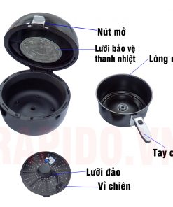 + Thiết kế tay cầm thông minh, bạn chỉ cần kéo rút nhẹ là có thể lấy lòng rồi ra khỏi khoang. Để lấy vỉ chiên ra khỏi nồi bạn chỉ cần kéo nhẹ vỉ chiên phía bên trong theo chiều hướng lên.