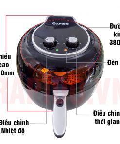 + Nồi chiên không dầu Rapido RAF-6.5M LUX sử dụng cảm biến nhiệt độ và thời gian, điều khiển cơ với hai nút xoay điều chỉnh nhiệt độ và thời gian. Bạn có thể điều chỉnh nhiệt độ và thời gian nướng bằng các núm vặn xoáy. Nồi sẽ cảm biến nhiệt độ, thời gian đã được cài đặt và tự động ngắt giúp đồ ăn chín đều, giòn, ngon, không bị cháy khét.