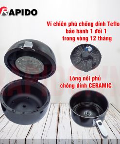 Nồi chiên không dầu Rapido RAF-6.5M LUX là sản phẩm thương hiệu Đức với dung tích 6.5L giúp chiên rán đồ ăn một cách nhanh chóng, hiệu quả, lành mạnh. Nồi chiên với thiết kể mang kiểu dáng hiện đại, sang trọng, sử dụng chất liệu nhựa ABS an toàn và bền bỉ, Nồi Rapido RAF-6.5M LUX có khả năng chịu va đập và thời gian sử dụng lâu dài. Vỉ chiên bằng hợp kim nhôm phủ chống dính Greblon, an toàn cho sức khỏe giúp cho thực phẩm không bị dính, vỡ nát trong quá trình chiên, rán…
