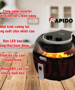 Nồi chiên không dầu Rapido RAF-6.5M LUX sử dụng công nghệ inverter tiên tiến mới nhất của Rapido giúp tiết kiệm năng lượng đến 50% so với nồi thường. Công nghệ Rapid Air không những chiên thức ăn không dùng đến dầu và còn giúp loại bỏ đến 80% lượng mỡ có sẵn trong thực phẩm.