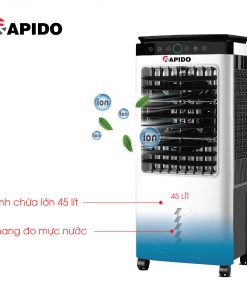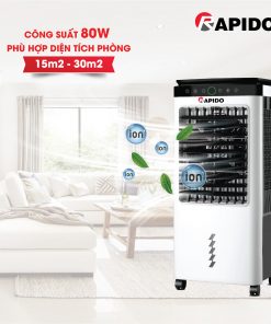 Quạt điều hòa không khí Rapido Lucky 6000-D được sản xuất tại Việt Nam trên dây chuyền hiện đại của Đức. Với thiết kế hiện đại, kiểu dáng sang trọng, chức năng vượt trội, độ bền cao mang lại sự tiện nghi cho gia đình. Ngoài ra, khi mua quạt điều hòa không khí Rapido Lucky 6000-D khách hàng được tặng thêm 02 hộp đá khô, hỗ trợ tối đa việc làm mát nhanh và sâu.