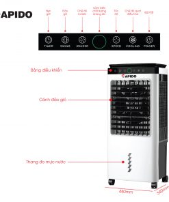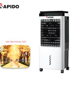 (Mặt trước và màn hình hiển thị của quạt điều hòa không khí Rapido lucky 6000D)