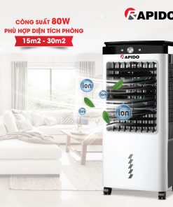Quạt điều hòa không khí Rapido Lucky 6000-M được sản xuất tại Việt Nam trên dây chuyền hiện đại của Đức. Với thiết kế hiện đại, kiểu dáng sang trọng, chức năng vượt trội, độ bền cao mang lại sự tiện nghi cho gia đình. Ngoài ra, khi mua quạt điều hòa không khí Rapido Lucky 6000-M khách hàng được tặng thêm đá khô, hỗ trợ tối đa việc làm mát nhanh và sâu.