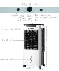 Quạt điều hòa Rapido FRESH 6000-M là sự kết hợp hoàn hảo giữa 3 thiết bị: điều hòa, máy lọc không khí và quạt thông thường. Sản phẩm nhỏ gọn, siêu êm thích hợp với phòng ngủ.